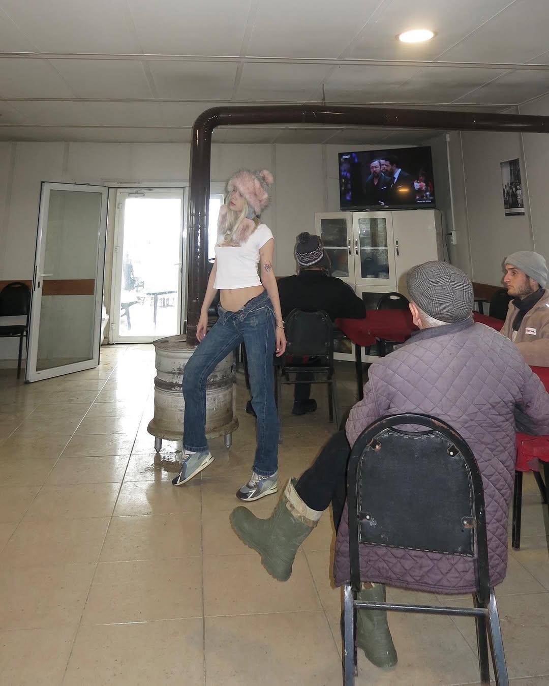 Son olarak kahvehanede pembe kürklü şapkası ile dayılarla çay içerek poz verdi.