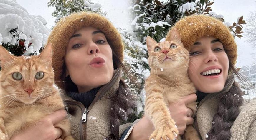 1001 Gece Masalları ile setlere dönmeye hazırlanan Cansu Dere, İstanbul’u etkisine alan karın keyfini kedisiyle çıkardı.
