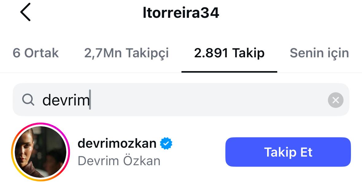 Yıldız futbolcu bir türlü vazgeçemediği aşkı Devrim Özkan’ı bir kez daha takibe alsa da ünlü oyuncudan bir geri dönüş alamadı. Eski aşkının takibine geri dönmeyen Devrim Özkan’ın yeniden birlikte olma fikrine sıcak bakmadığı konuşulanlar arasında… Torreira’nın son 24 saatte Duygu German ve Demet Özdemir’i takipten çıkardığı, sadece Devrim Özkan’ı geri eklediği de dikkat çeken detaylar olarak karşımıza çıkıyor.