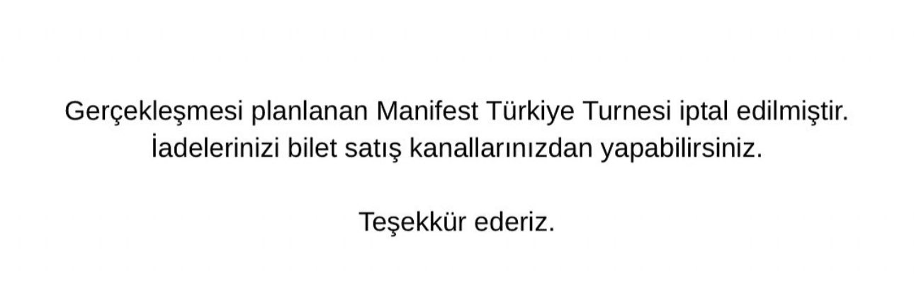 Manifest, Türkiye turnesindeki tüm konserlerini iptal ettiğini duyurdu.