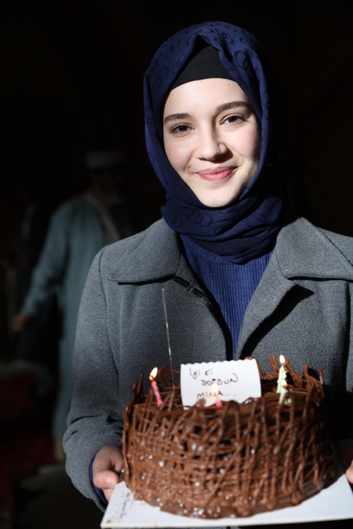 Kızıl Goncalar dizisinde canlandırdığı Zeynep karakteri ile hayatımıza giren Mina Demirtaş, oldukça genç ünlülerimizden. Ufak yaşlarda şöhreti yakalayan Mina Demirtaş, dün 17 yaşına girdi. Genç yaşına rağmen Kızıl Goncalar dizisinde gösterdiği oyunculuk performansı ile dikkatleri üzerine çeken Demirtaş için dün oyuncu arkadaşları ve set ekibi tarafından bir doğum günü kutlaması hazırlandı. Oyuncu arkadaşlarının elinde gelen pasta ile çok mutlu olan genç oyuncunun doğum günü kutlamasında partneri Mert Yazıcıoğlu da vardı.